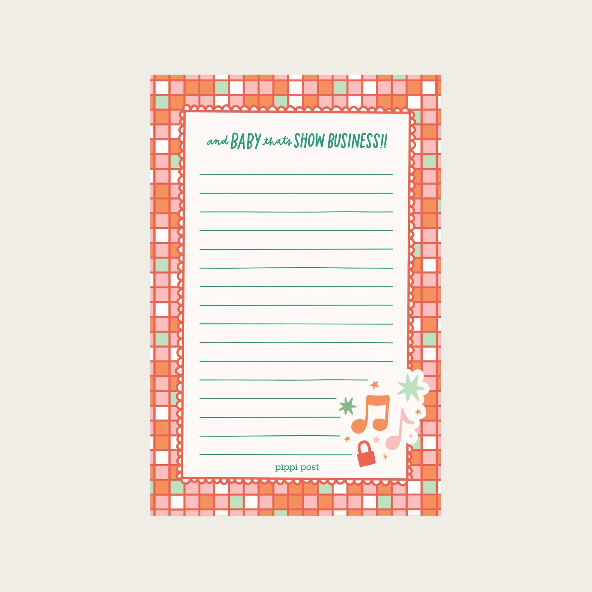 Cue the lights, hit the beat, and grab your pen! The Baby That’s Show Business 4x6 Notepad is here to bring some sparkle to your scribbles. With a vibrant disco-inspired border, hand-lettered flair, and fun little icons (hello, music notes and stars!), this notepad is perfect for writing down your daily plans, big dreams, or next big number. Great for gifting, glam desk setups, or anyone living their pop star era—because baby, that’s stationery magic.