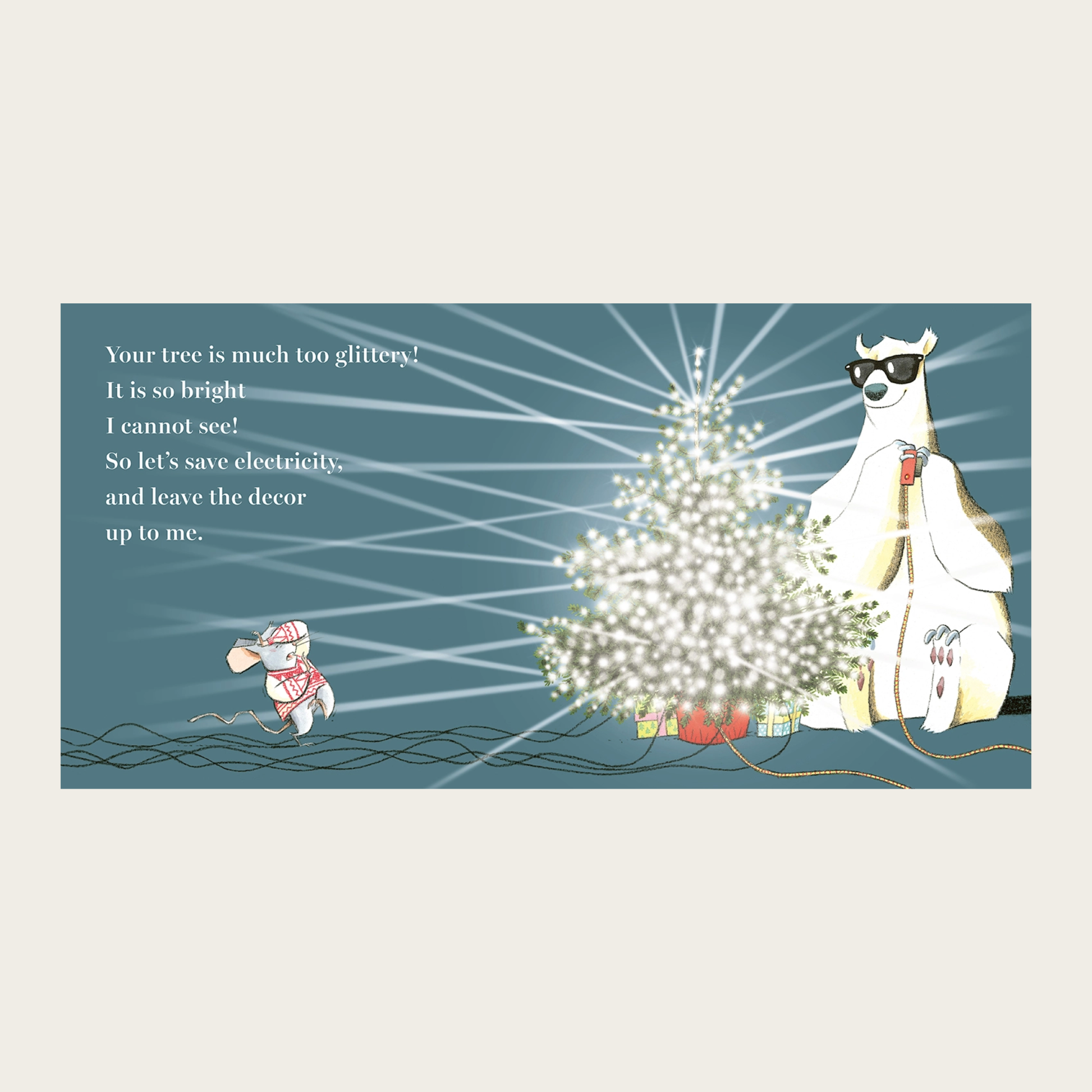 Bear and Mouse have finally overcome their differences and are living together in perfect harmony . . . until it’s time to decorate the Christmas tree! Bear wants dazzling lights, while Mouse prefers gigantic ornaments. Did Mouse just put a manatee on the top of the tree? After Bear attempts an upside-down tree, it looks as if Christmas might be ruined for the pair. But maybe, just maybe, Bear and Mouse can reach a compromise in the spirit of the season.